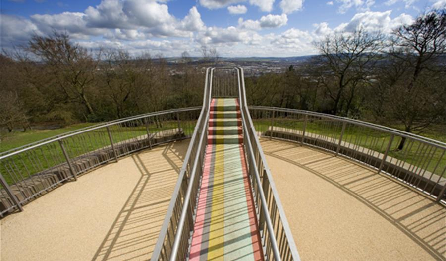 Situated in Blackburn’s Corporation Park, Colourfields is a vibrant transformation of a former cannon battery into a viewing platform. The design incorporates colorful surfaces and offers panoramic views of the park and the town beyond.